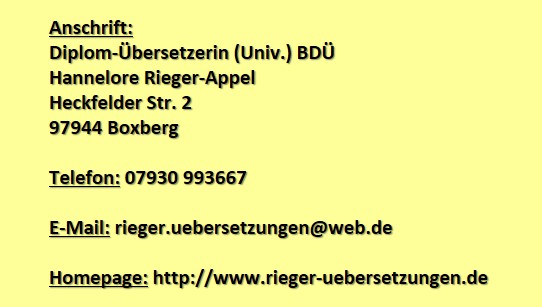 Rieger-Übersetzungen können Sie folgendermaßen erreichen: